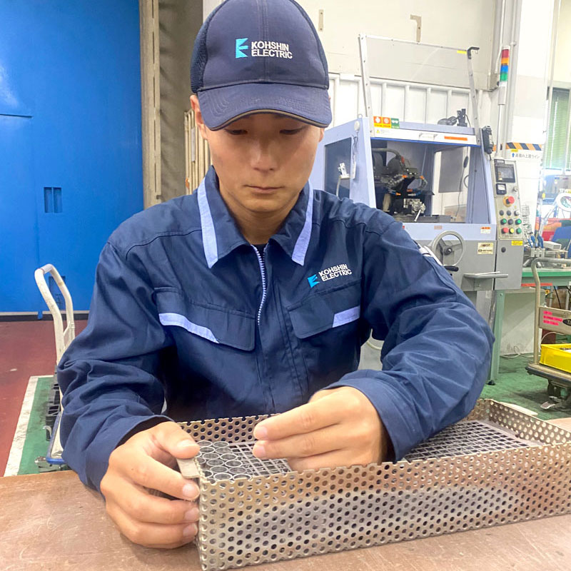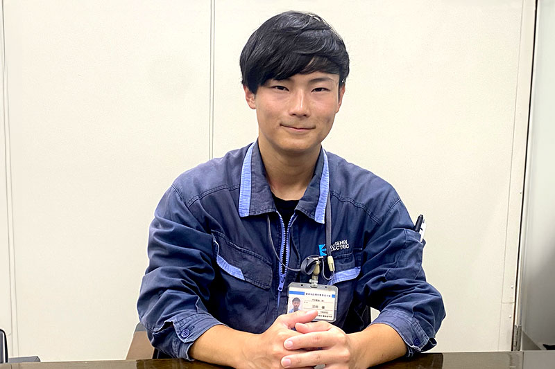 高校は工業系ではなく普通科で、当社の事業分野である電気や電子などについては学んでいませんでした。もともと高校卒業後は自衛隊への入隊を希望していましたが、部活動での怪我により入隊の条件を満たせなくなってしまったため、民間企業への就職活動を行うことになりました。そこで当社の求人票を見つけ、年間休日が多く、教育研修制度が充実している点などに興味を持ちました。そして、職場を見学したところ、実際に自分が働くイメージを持つことができたので志望しました。